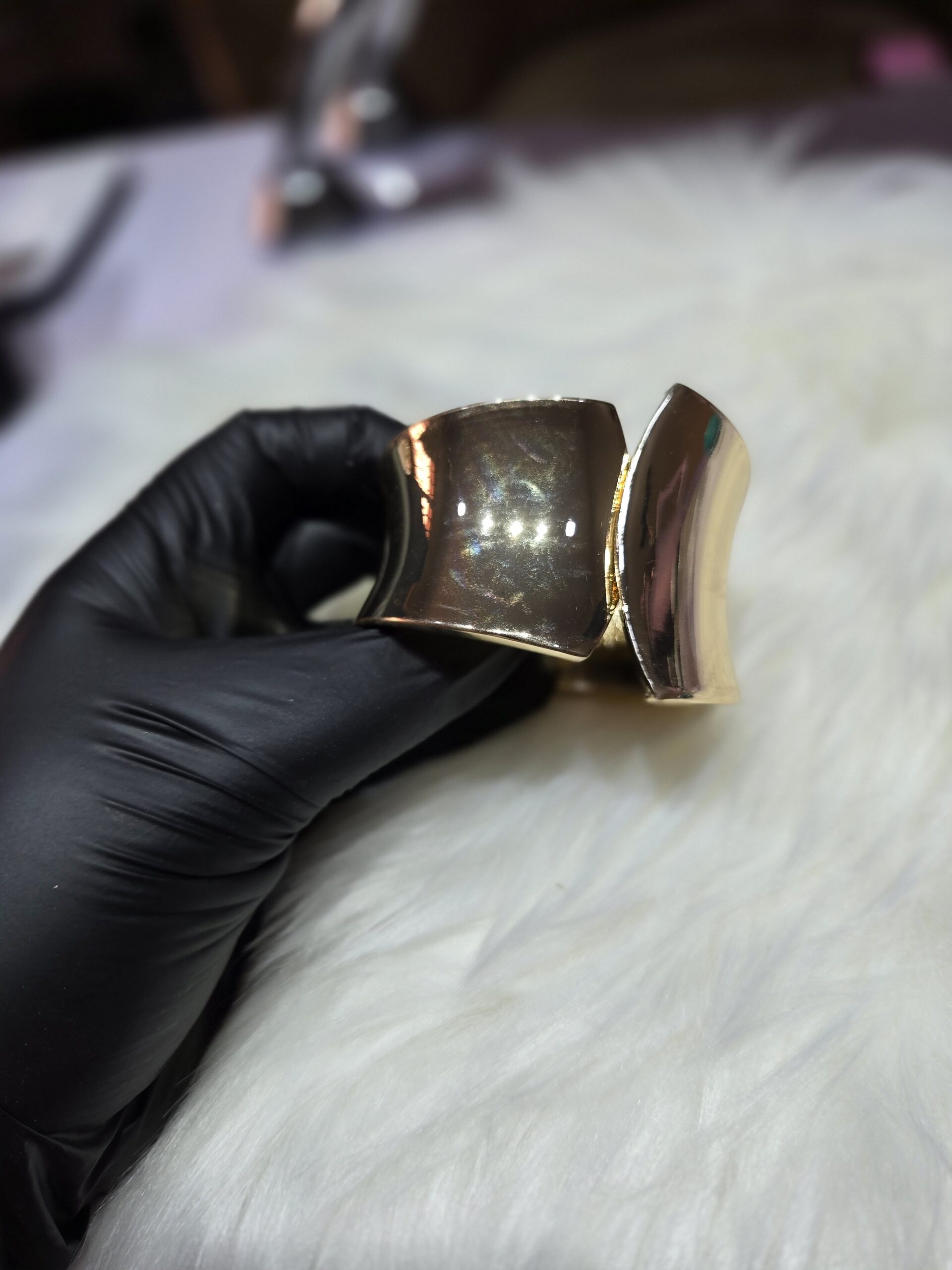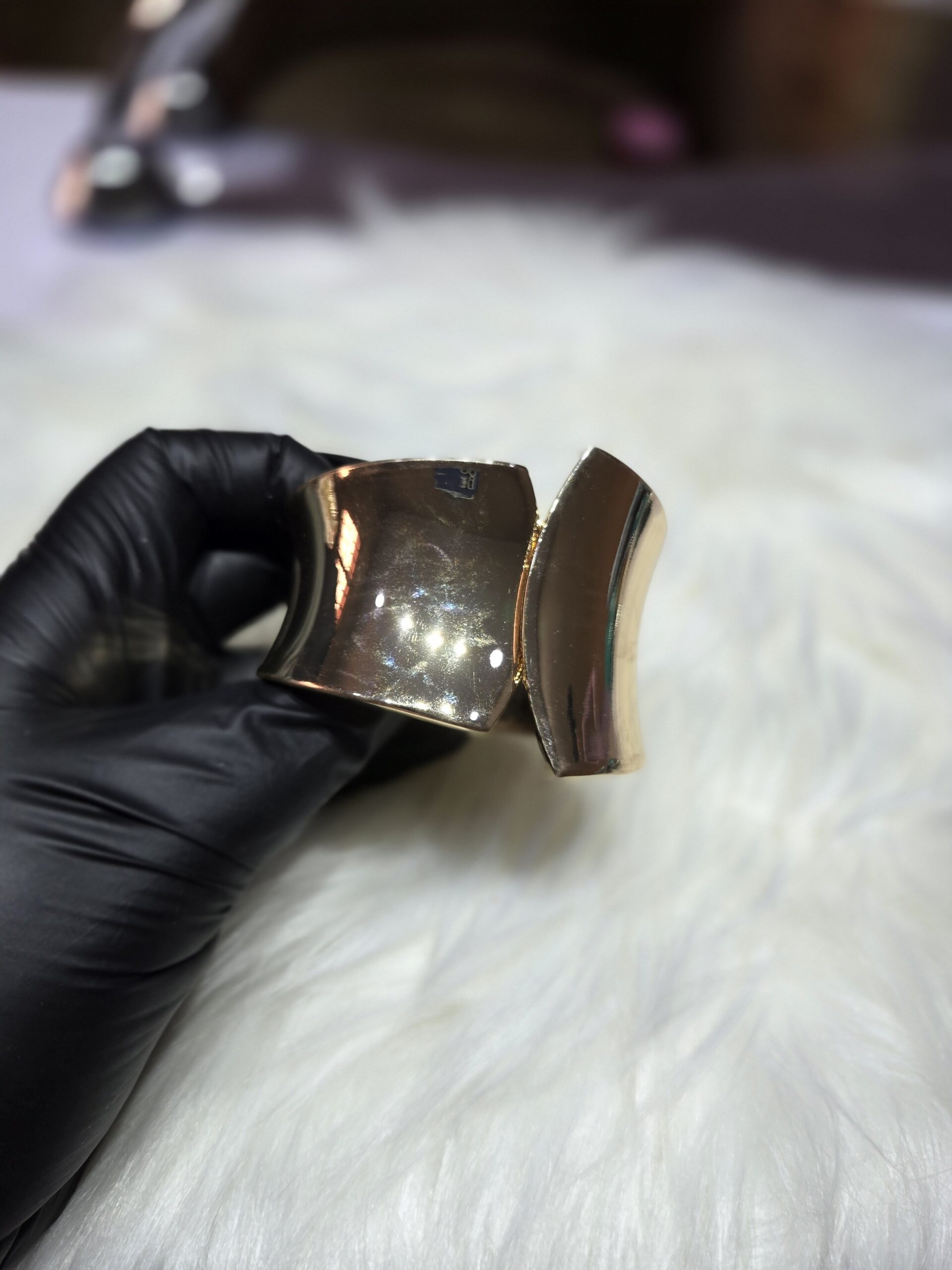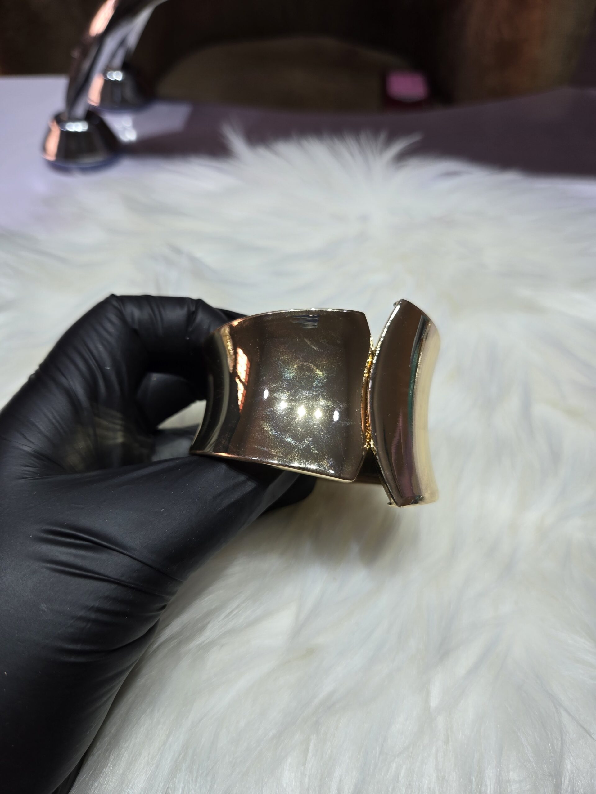 Design: Wide-tapered chunky cuff with a secure hidden clasp.